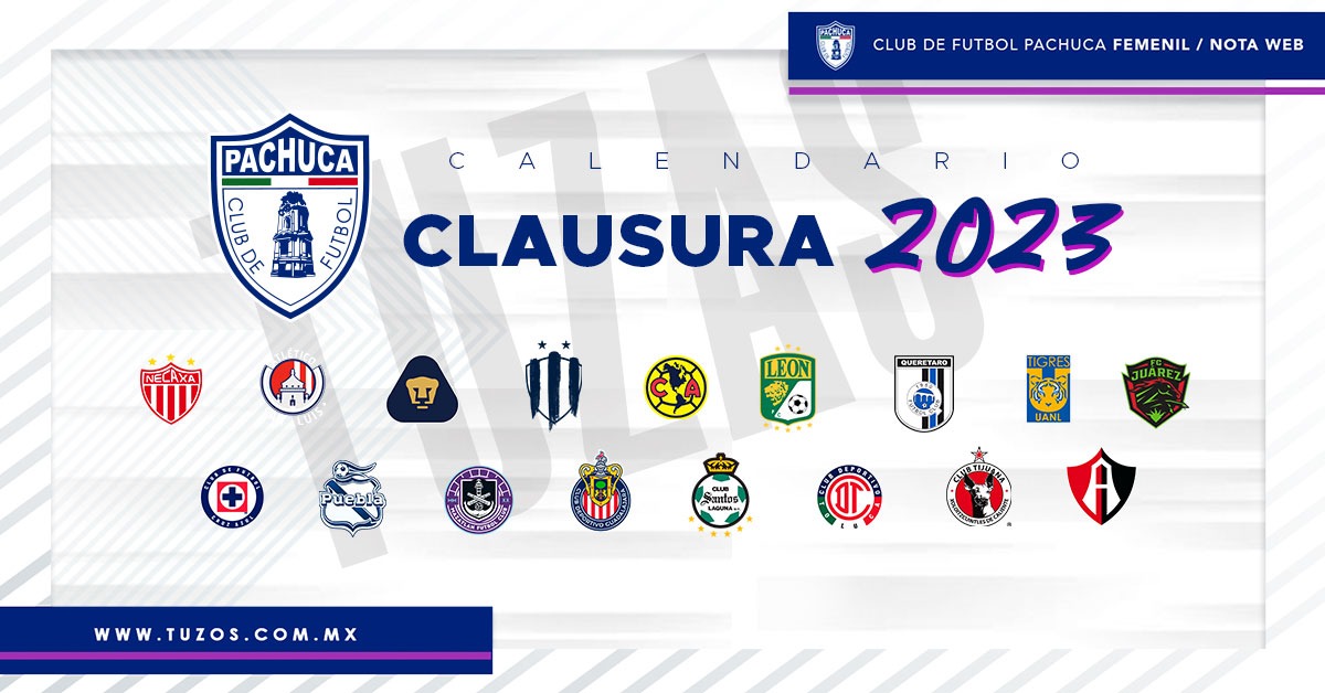 PACHUCA, HGO.- Se ha dado a conocer este viernes 25 de noviembre el calendario de juego para el próximo ‘Clausura 2023’, en el que las Tuzas del Pachuca insistirán en buscar su primer título de la Liga BBVA MX Femenil, que se disputará del 6 de enero al 15 de mayo en su fase regular y del 18 de mayo al 5 de junio del 2023 en su fase final.