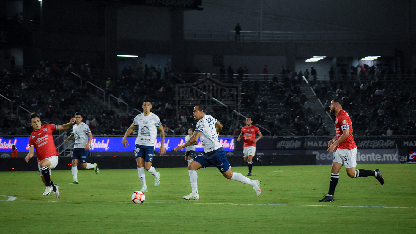 En los albores del partido Pachuca intento hacerse de la posesión del esférico pero al llegar cerca del área mazatleca falló en el pase previo que pudiera dejar a algún jugador con posibilidades frente al marco; Felipe Pardo y Víctor Guzmán crearon un par de ocasiones pero el acecho blanquiazul no rindió frutos. Aguirre es quien había tenido un remate con rumbo a las redes, pero Mauro Quiroga no logró quitarse de la trayectoria y desvió la dirección fuera del marco de Vikonis.